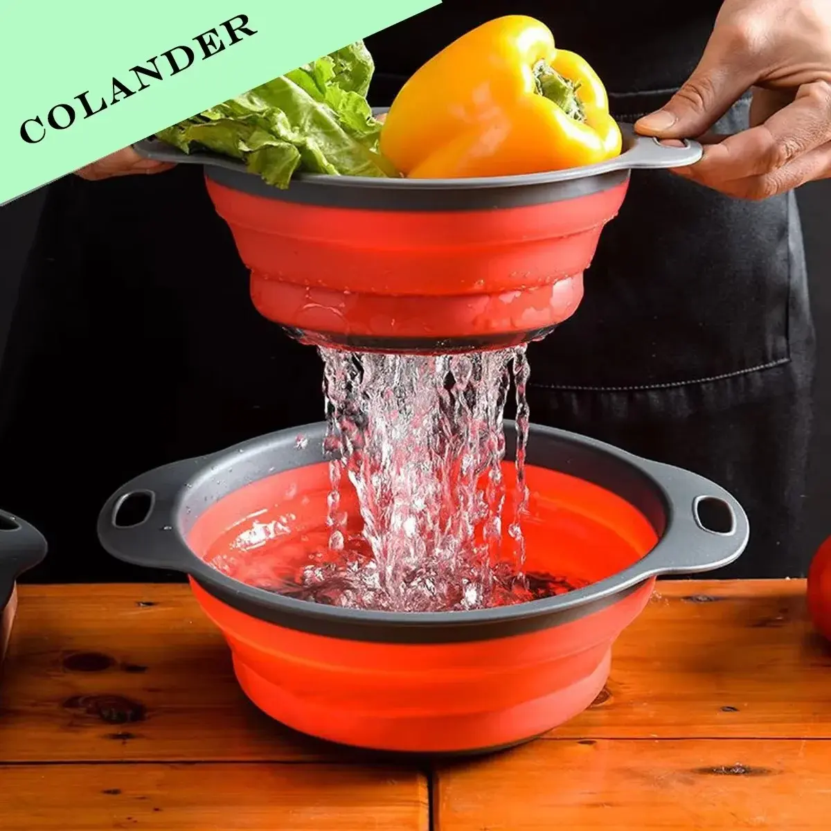 collapsible colander, silicone strainer, kitchen basket, quick drain colander, vegetable strainer, fruit washing basket, BPA free colander, unbreakable kitchen tools Pakistan