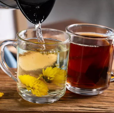 Set of 6 clear glass tea and coffee mugs.